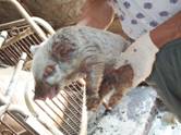 suddenly presents covered in patches of dirty brown greasy wet skin. The hair is matted and may become a gray